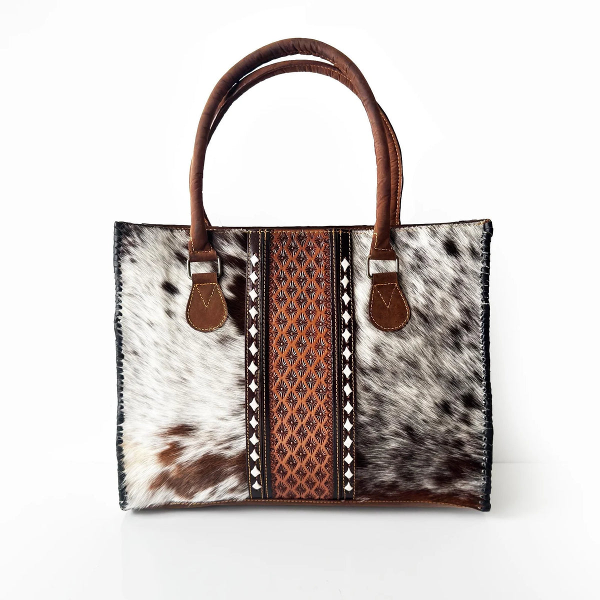 Material: Enjoy the luxurious feel of top-quality cowhide complemented by rich leather accents. Each piece is hand-selected for its texture and color, ensuring a one-of-a-kind accessory.