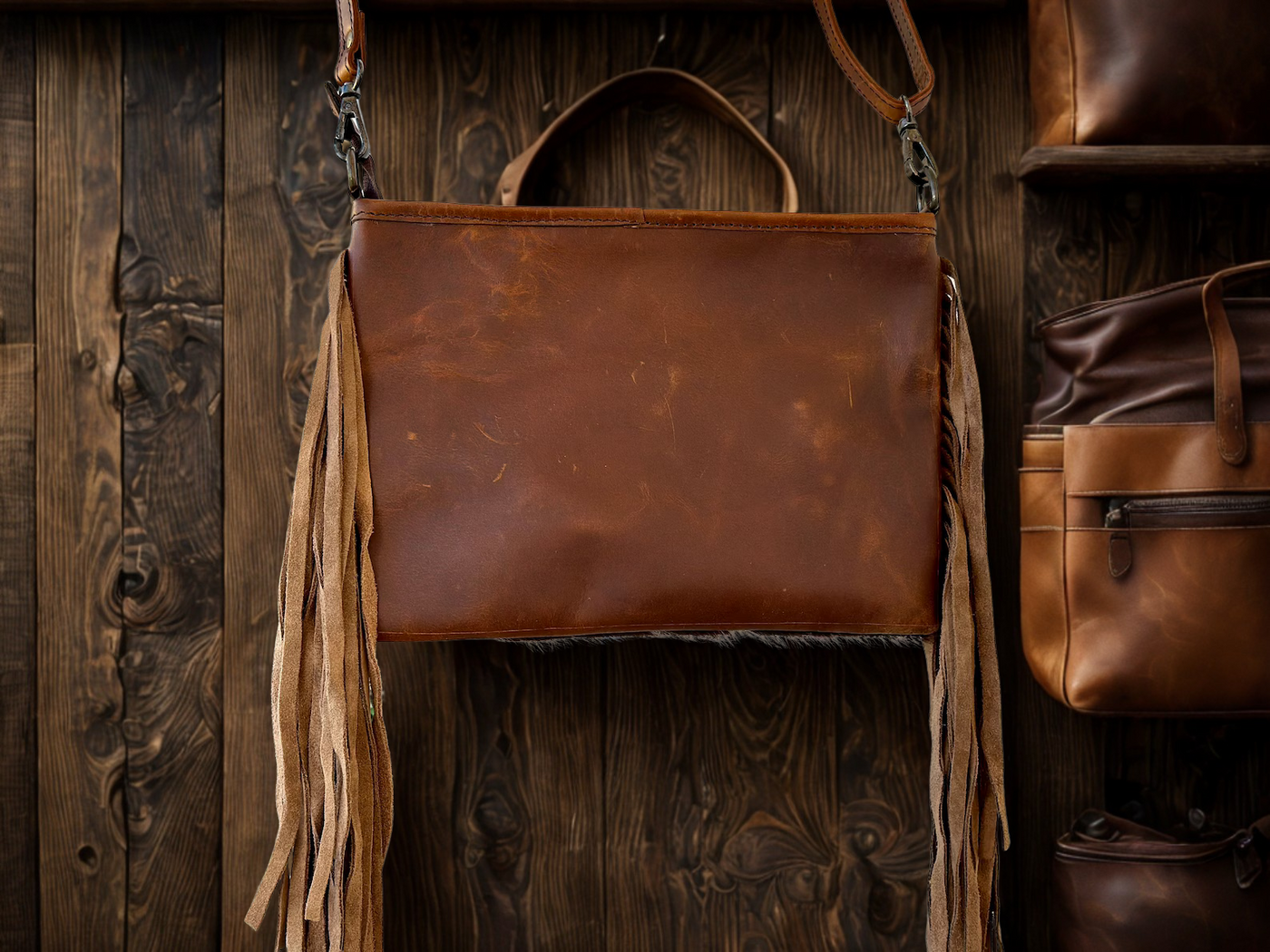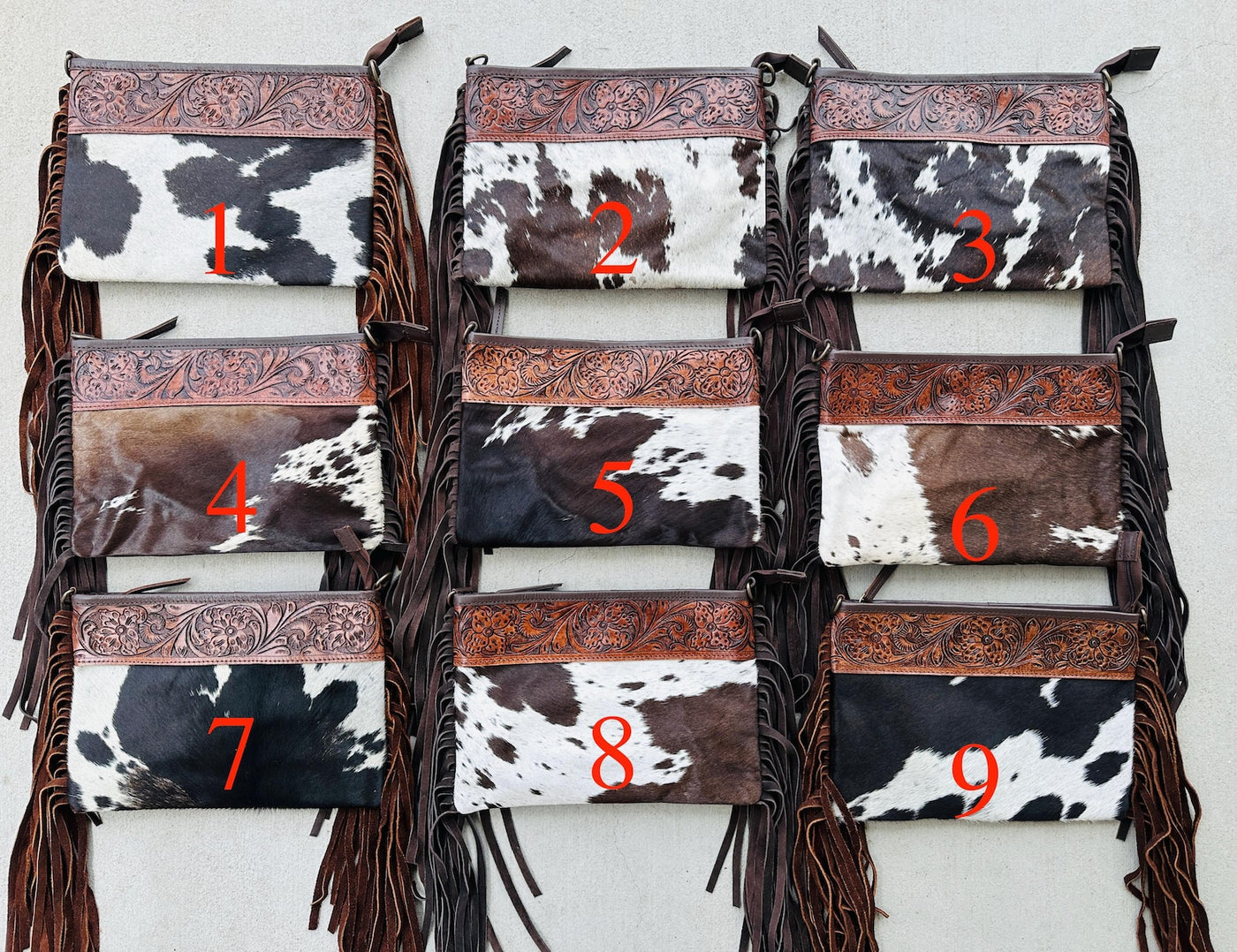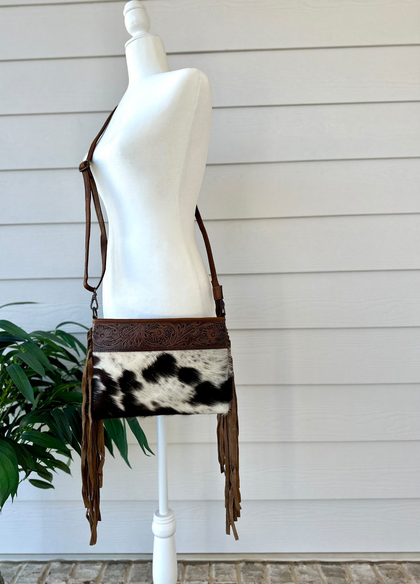 Cowhide Crossbody Bag: Tooled Leather & Fringe - Handmade Western Purse