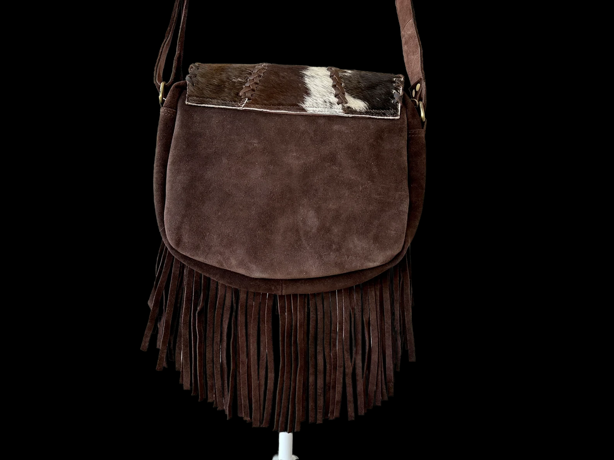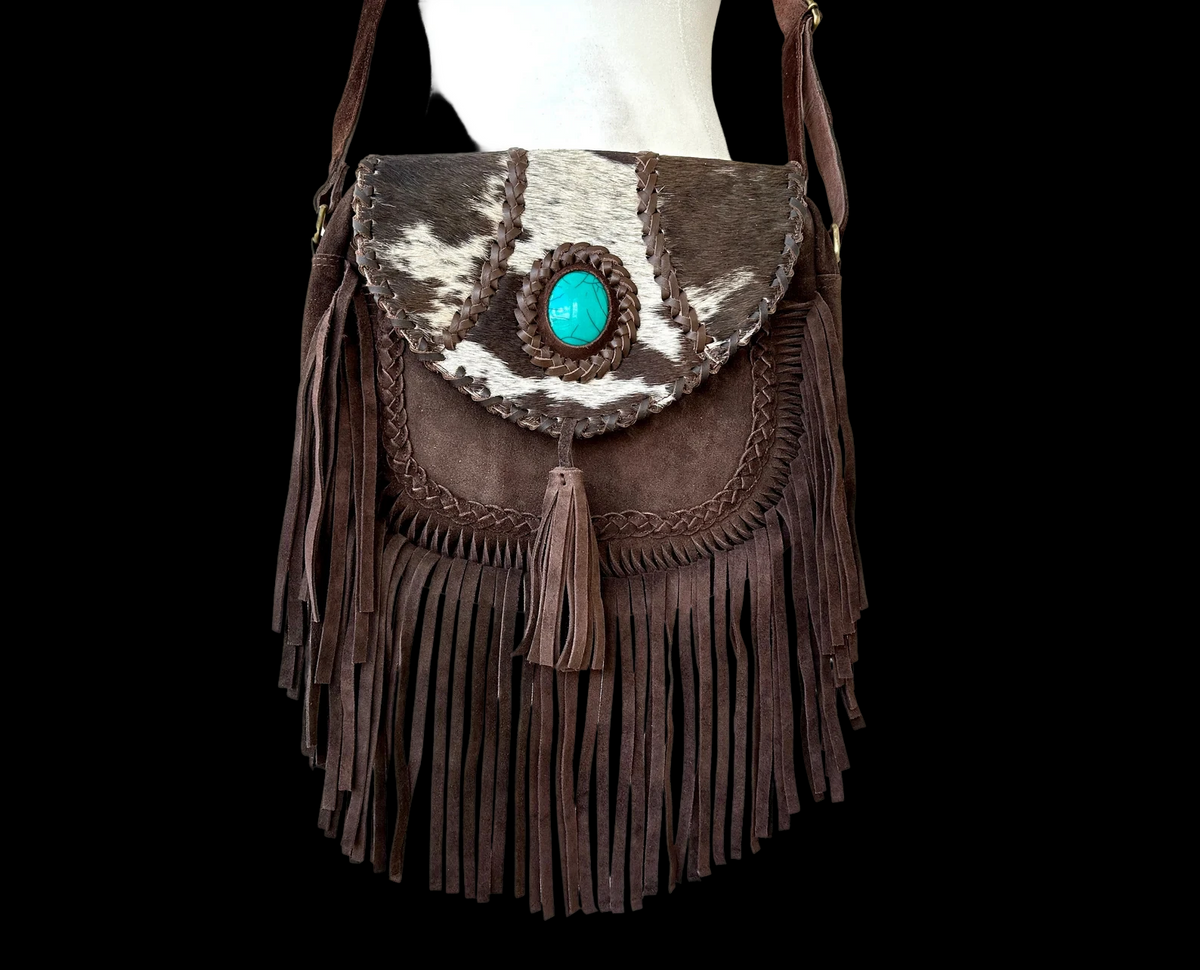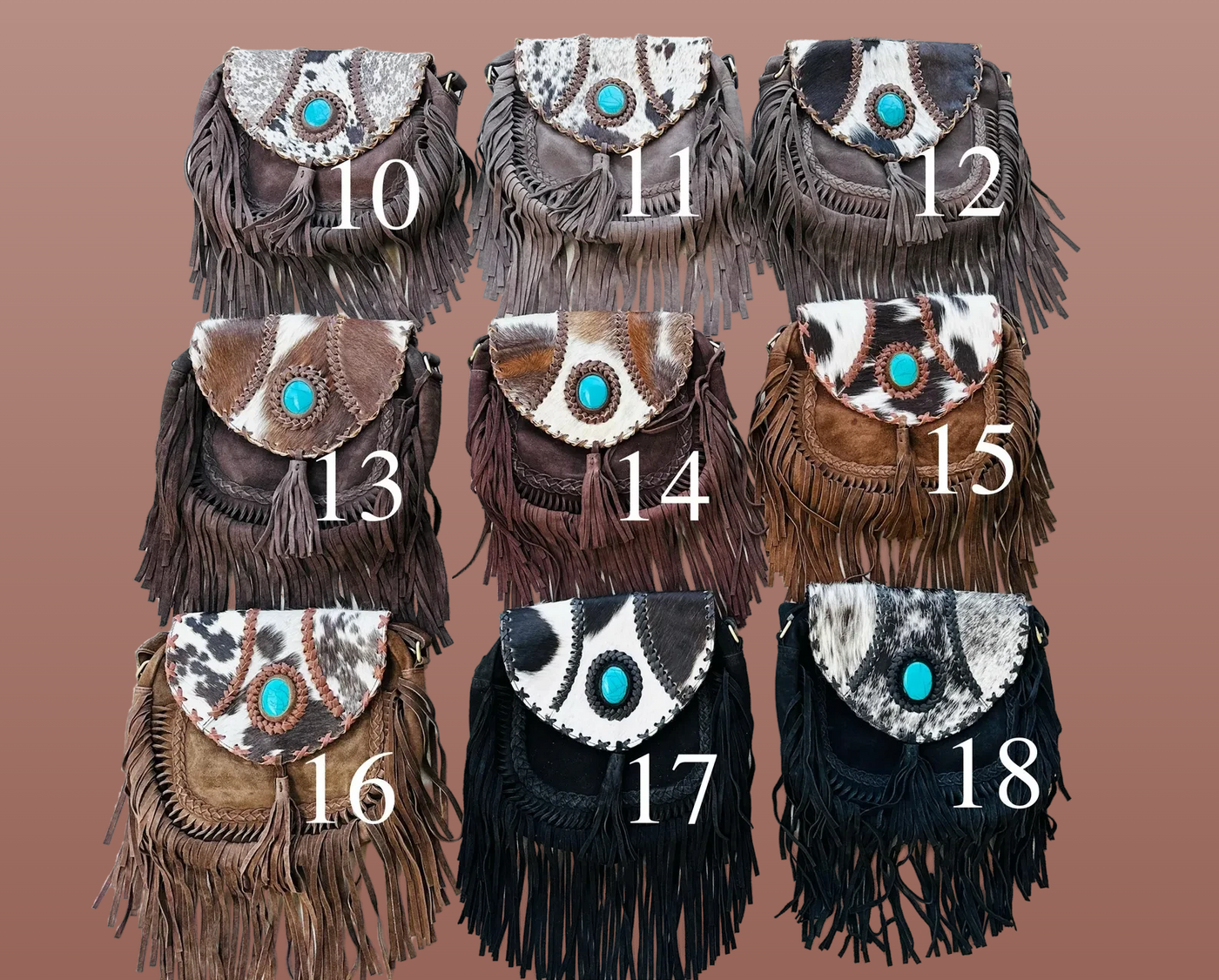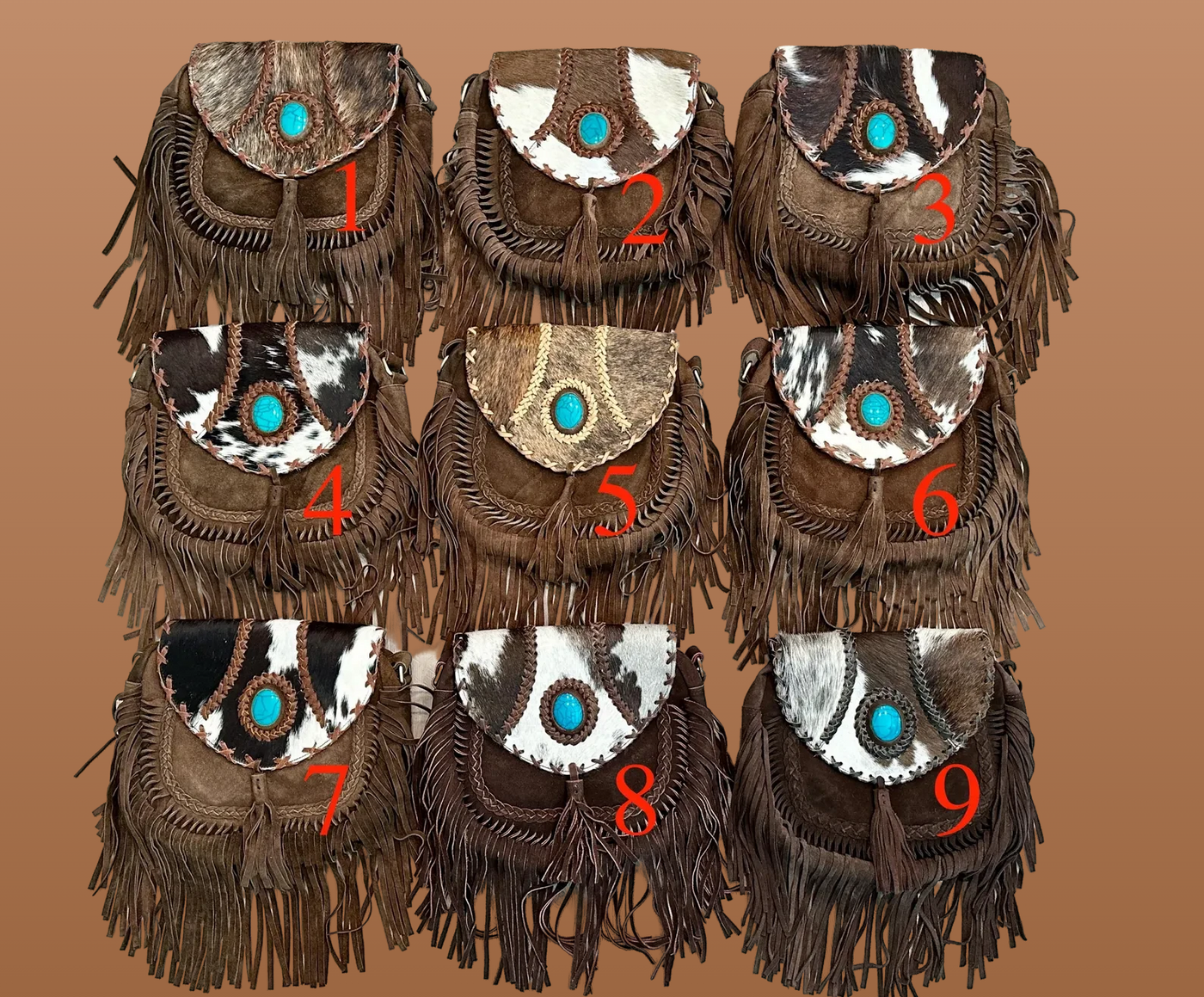 Cowhide Leather Crossbody Purse: Turquoise & Fringe Western Handbags