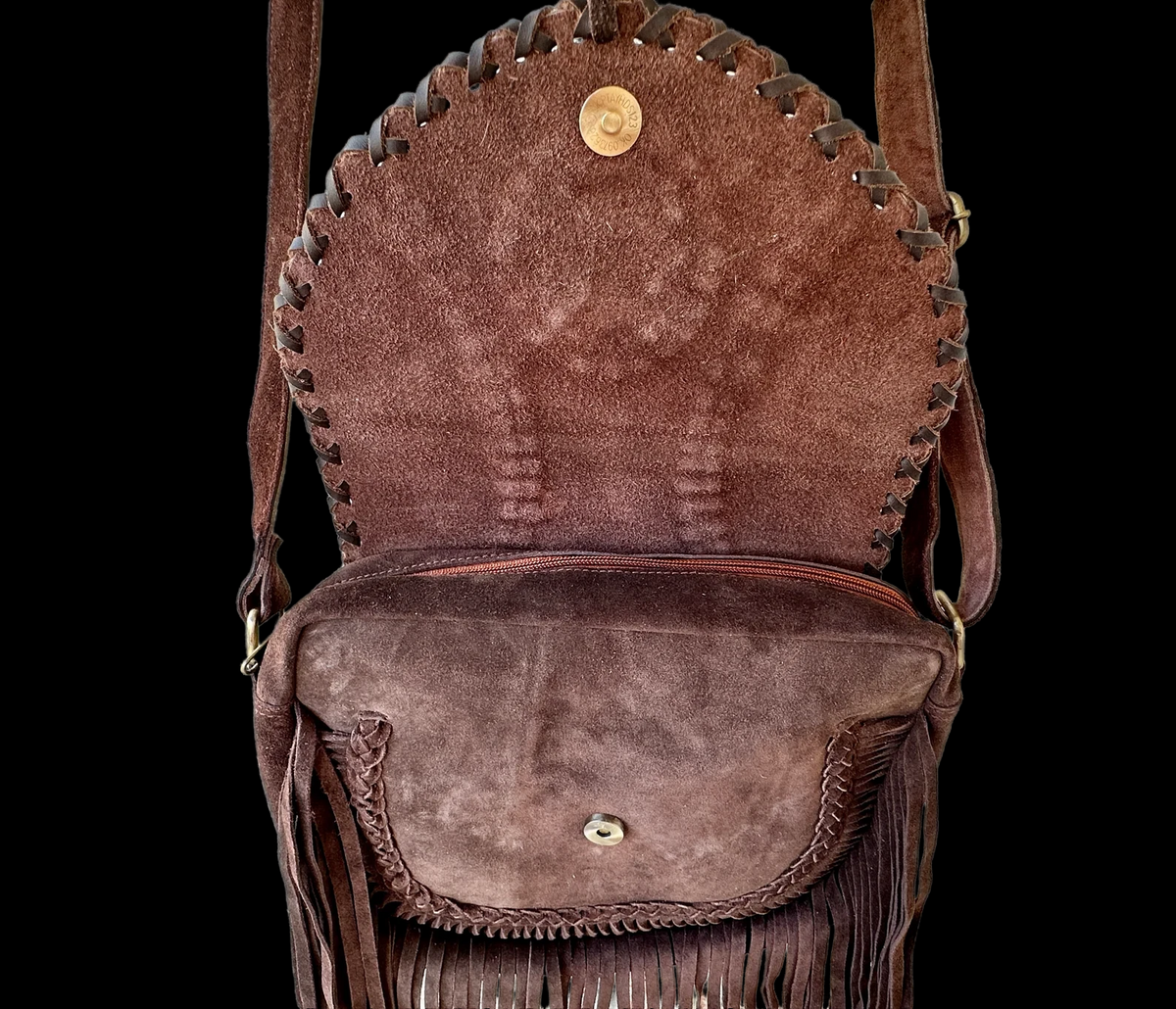 Type: Western Hand-Tooled Crossbody Bag with Turquoise Leather Fringes