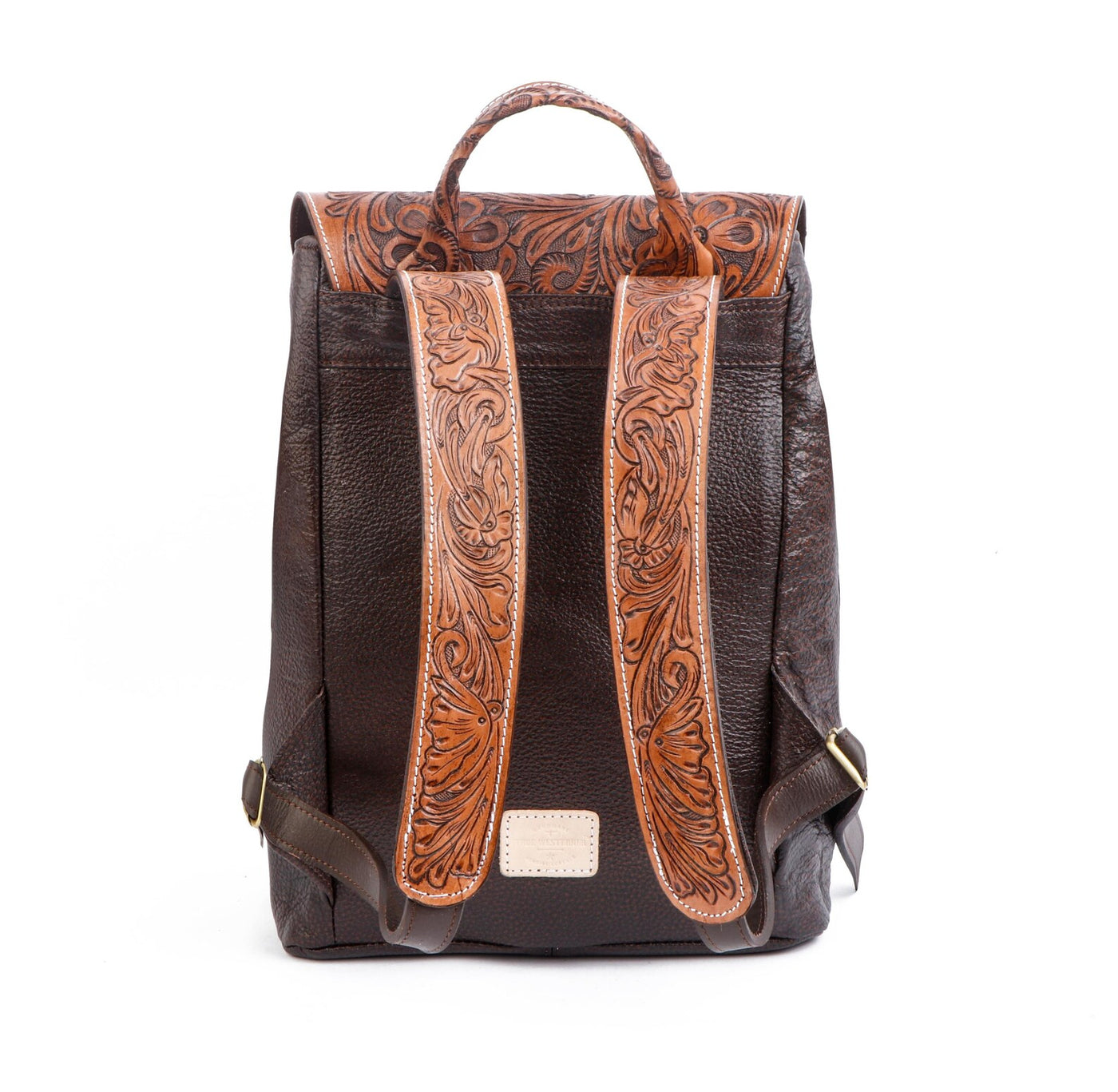 Hand Tooled Leather Backpack: Western Cowhide Travel Bag